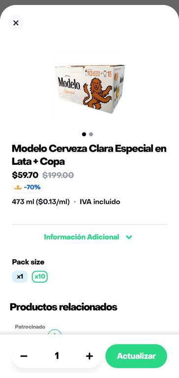 RappiEn la sección turbo las cervezas están en rebaja y este paquete de Modelo te sale a 60 pesos por 10pz (6c/u)