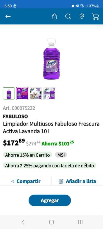 Sam's Club: Fabuloso Lavanda 10 litros | Precio al agregar al carrito