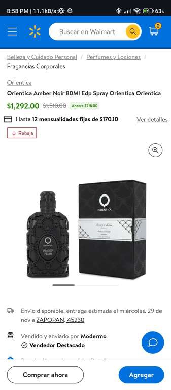 Walmart: Perfume Orientica Amber Noir 80ML EDP | Moderno