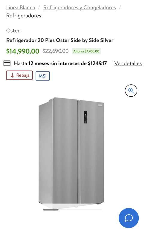Walmart: Refrigerador Oster Side by Side de 20 Pies
