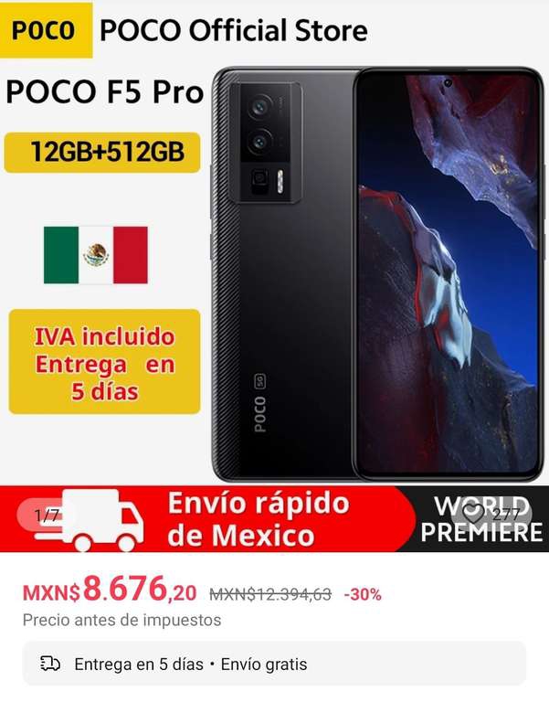 AliExpress Ir a la ofertaVendido por la tienda oficial de Poco y enviado desde la bodega de México. Me parece buen precio.