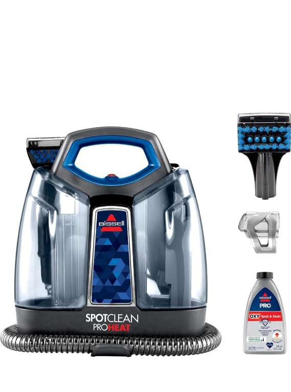 Elimina permanentemente las manchas y manchas difíciles con la fórmula Bissell Spot Clean Preheats y Bissell Professional Spot and Stain + Oxy. La tecnología Heatwave integrada ayuda a mantener una temperatura constante del agua. Es una máquina de limpieza potente, compacta y portátil.