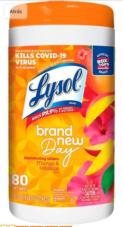 Amazon: Lysol Toallitas Desinfectantes para Superficies Fragancia Mango & Hibiscus 80 pz