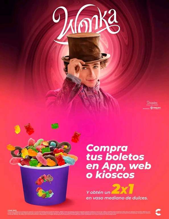 2X1 en Dulces Vaso Mediano al comprar tus boletos en la app o Kioskos. Espero que les sirva .