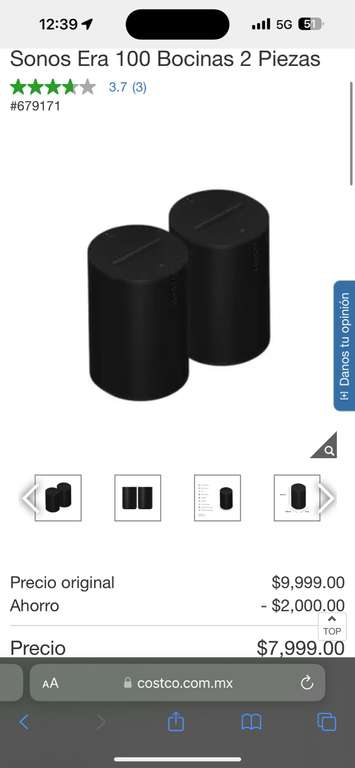 Costco: Sonos Era 100 (son 2 bocinas)