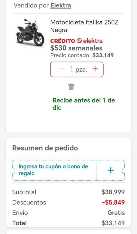 Elektra Ir a la oferta15% En motos italika pagando con tarjetas de crédito y envio a domicilio