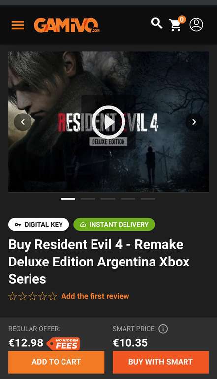 Gamivo Ir a la ofertaSeleccionan al vendedor más barato, en este caso es GameVerse. Agregan cupón GAMIVOISIC, proceden a pagar y desactivan el SMART, quedando en un precio de 11.68 euros. Pagan con Paypal y cambian la opción de divisas para que te cobre en euros y la conversión la haga tu banco. Al final quedará en un precio de $219-$220 dependiendo tu banco.