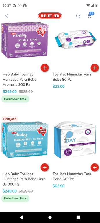 HEB Ir a la ofertaToallitas húmedas para bebe de marca propia HEB en oferta. Hay varias presentaciones para escoger.