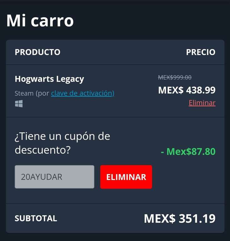 Entré a nuuvem para tomarme un descanso de las tiendas de códigos de xbox y me encontré esta oferta, queda en 351 y es el precio más bajo que he visto para steam.