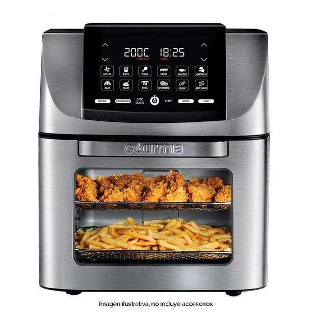 Walmart Ir a la ofertaBuscando una freidora de aire en oferta me encontré esta que parece ser todo en uno. Me parece un buen precio para todas las funciones y tamaño.