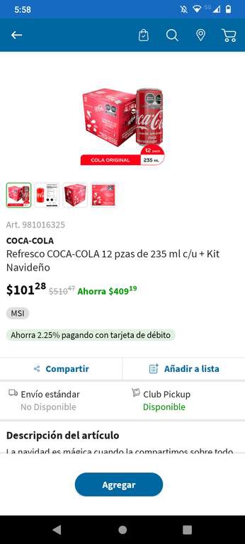 Sam's club [Santa Fe]: 12 de coca cola 235 mL c/u + kit navideño