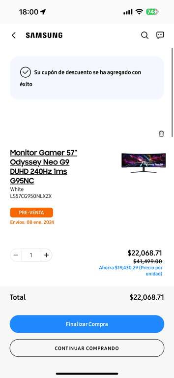 Con esto la logramos bajar a 24mil, pero si usas la app de samsung y tienes cuenta de primera vez te hace otro 10% dejandola en 22k