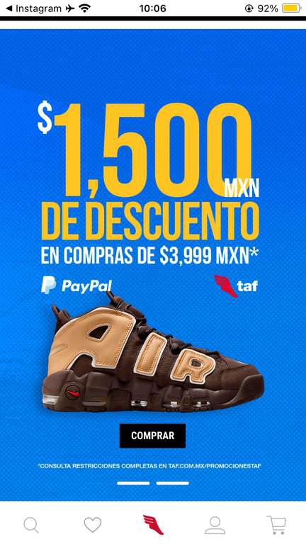 TAF $1500 de descuento en compras de $3999 con PayPal. Descuento en la aplicación