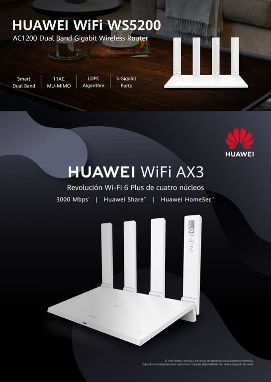 Huawei HiLink y protocolo 802.11v, IPv4 / IPv6, PPPoE / DHCP / dirección IP estática / métodos de conexión Bridge WAN, temporizador Wi-Fi, Wi-Fi para invitados, limitación de velocidad del dispositivo, filtro de dirección MAC, control parental, paso de VPN, DMZ /servidor virtual.