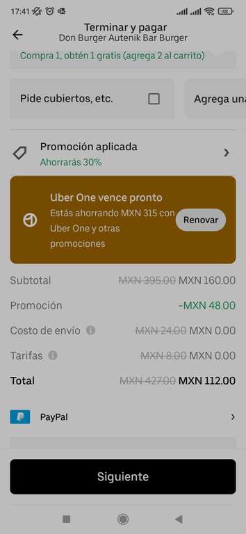(Sin gastos extras con Uber One)