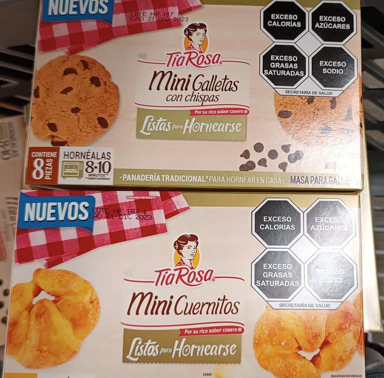 WalmartMini cuernito y mini galletas con chispas de chocolate Tía Rosa, listos para hornearse con 8 y 7 piezas respectivamente en Walmart Express de Revolución. Son próximas a caducar por eso la liquidación, afortunadamente no tuve problemas al pagar.
