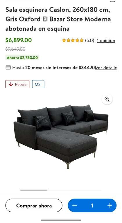 Walmart: Sala Esquinera Caslon 5,568 pagando a 18 MSI con BBVA