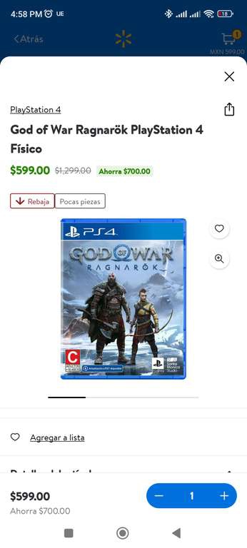 Walmart super: God of war Ragnarok PS4 - Cdmx