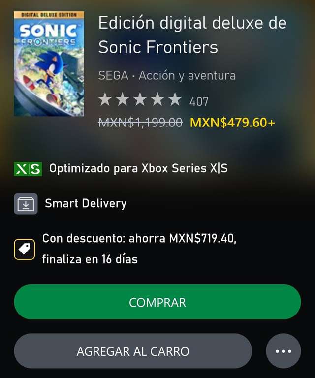 Rebajado en tienda Xbox de -,190 a 479.60, únicamente para Xbox Series X/S