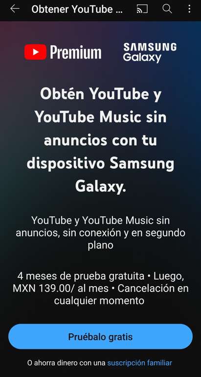 Promoción con dispositivos SAMSUMG, pueden cancelar en cualquier momento y posterior les cobrará $139 MXN al mes