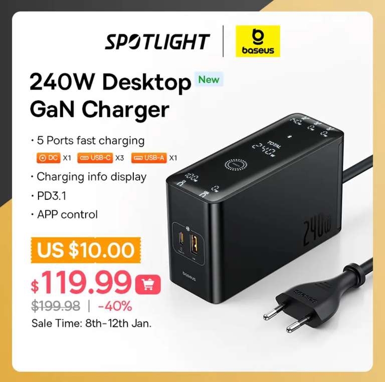 Baseus-cargador Digital GaN de 240W para ordenador portátil, dispositivo de carga rápida con puerto de CC, compatible con Lenovo, HP, Macbook, iPhone y Xiaomi