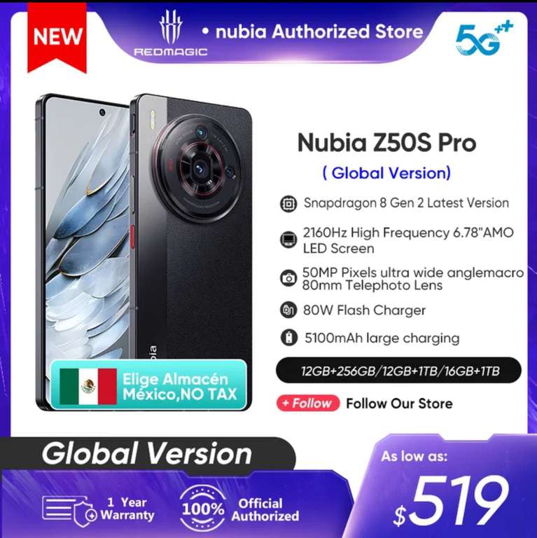 Nubia-Z50S Pro, versión Global, 5G, 120Hz, AMOLED, flexible, última versión, Snapdragon 8 Gen 2, última cámara Dual de 50MP, carga rápida de 80W
