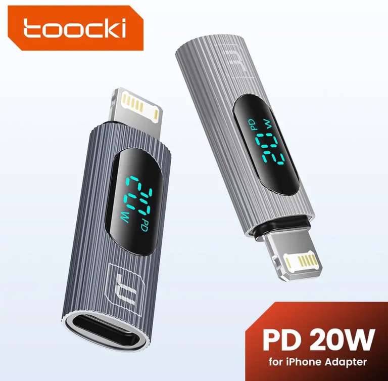 AliExpress Ir a la ofertaToocki USB 2,0 pantalla OTG adaptador PD 20W de carga rápida conector macho a tipo C hembra para iPhone 15 14 13 convertidor