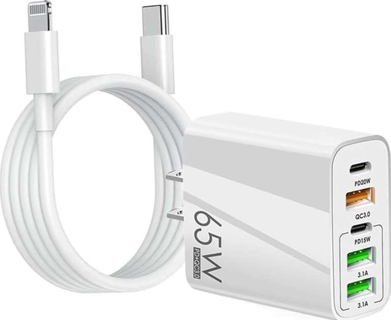Amazon Ir a la ofertaIncluye puerto de carga rápida tipo c 2 20W + PD15W, cable de carga rápida de 1,5 m, puede cargar rápidamente su teléfono, media hora al 50%, 1.5 ~ 1.8 horas para cargar completamente su teléfono , que el cargador original es 3 veces más rápido, ahorrando más tiempo de carga.