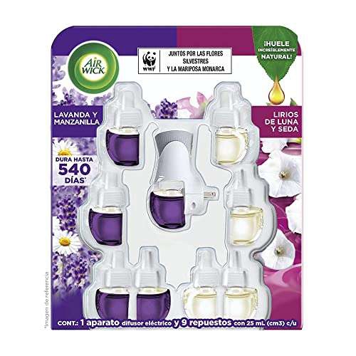 AMAZON: Air Wick Aromatizante de Ambiente Eléctrico Aparato + 4 Repuestos Lavanda Manzanilla y 4 Lirios de Luna y Seda 20 ml c/u