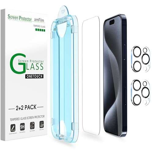 Amazon: AmFilm Mica iPhone 15 Pro Max [2 Micas + 2 Piezas Protector Cámaras]
