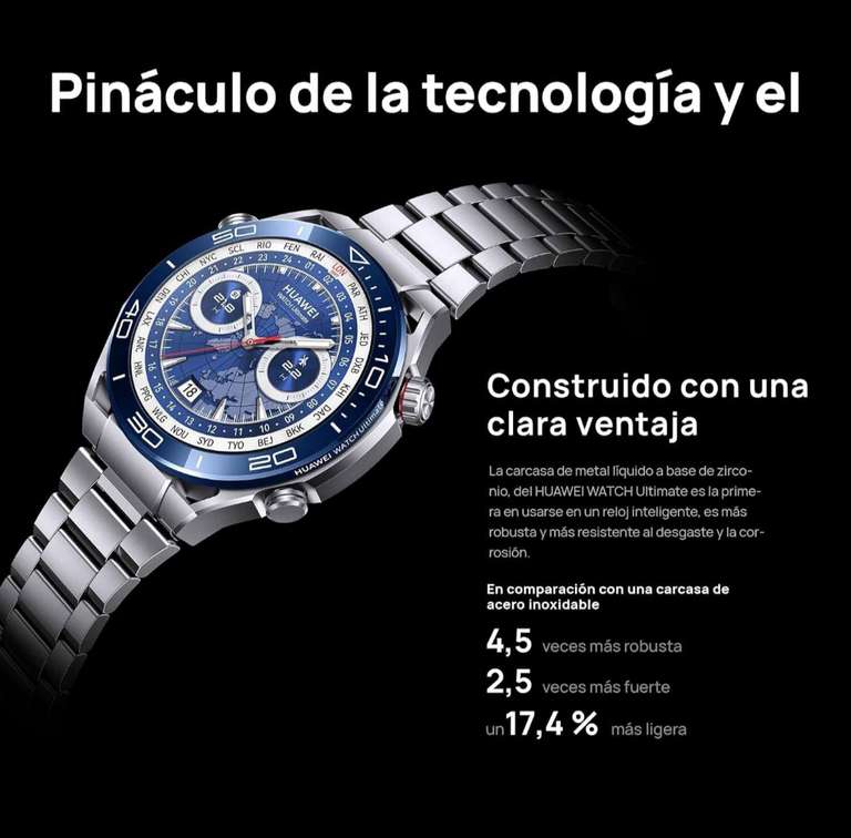 - 【Materiales de primera calidad, diseño superior】El HUAWEI WATCH Ultimate, viene fabricado con metal líquido a base de circonio, con un bisel de cerámica de nanotecnología y una esfera del reloj de zafiro con pantalla LTPO AMOLED de 1,5 pulgadas, siendo un equipo robusto y resistente al desgaste.