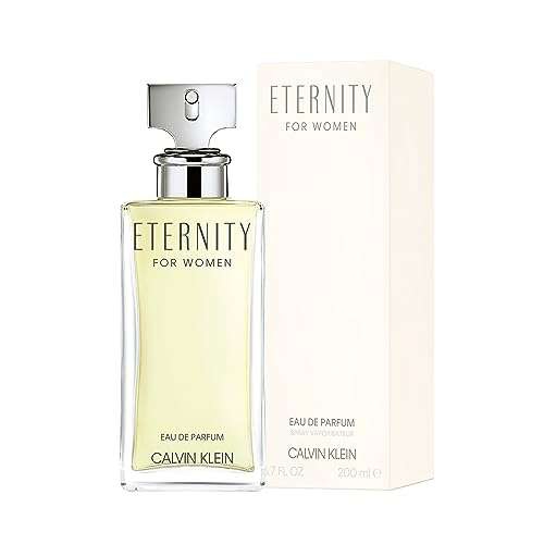 Eternity de Calvin Klein es una fragancia de la familia olfativa Floral para Mujeres. Eternity se lanzó en 1988. La Nariz detrás de esta fragrancia es Sophia Grojsman. Las Notas de Salida son notas verdes, fresia, salvia, cítricos y mandarina; las Notas de Corazón son clavel, azucena, lirio de los valles (muguete), narciso, caléndula, violeta, rosa y jazmín; las Notas de Fondo son almizcle, heliotropo, sándalo, ámbar y pachulí.
