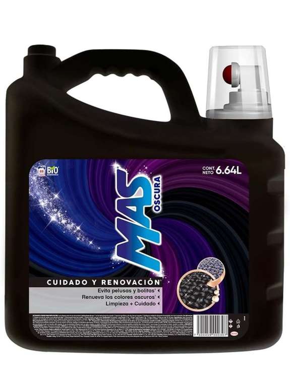 MAS Oscura - Oscuros Intensos 6.64L Detergente Líquido para Ropa Oscura y de Mezclilla (88 Cargas) Cuida Mantiene y Renueva los Tonos de las Prendas Oscuras
