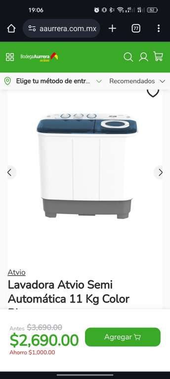 Bodega Aurrera: Lavadora ATVIO 11KG DOBLE TINA