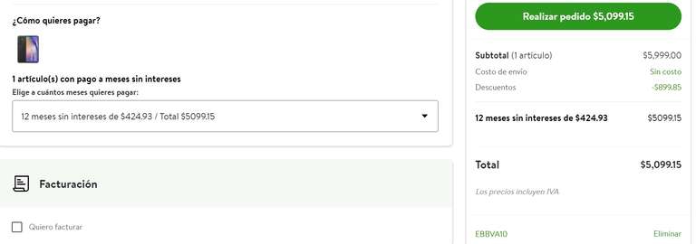Bodega Aurrera Ir a la ofertaDescuento de 15% con BBVA (seleccionar pago a 12 msi) y agregar el código EBBVA10, el vendedor el telmov y en su propia página lo ofrece en 5,799. Envío gratis.