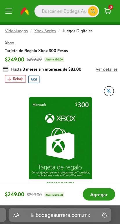 Bodega Aurrera: Tarjeta de Regalo Xbox 300 Pesos