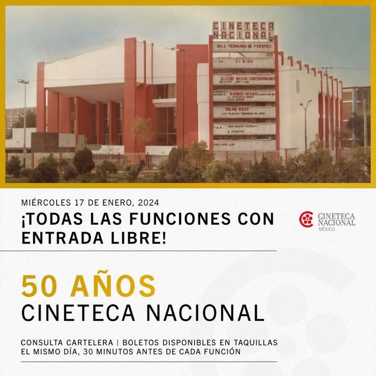 Ir a la ofertaÉste 17 de enero la Cineteca Nacional cumple 50 años y lo celebra con entrada libre a todas las funciones de ese día. Los boletos estarán disponibles en taquilla 30 minutos antes de cada función.