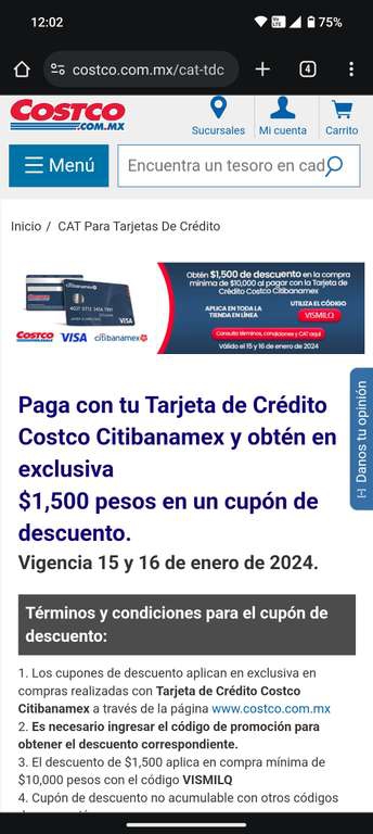 Costco -$1500 en compras de $10000 (costo TC)