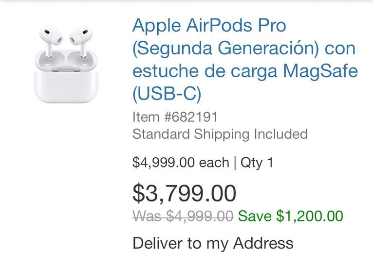 Costco Ir a la oferta-,200 pesos de descuento directo en Airpods Pro 2 USB C, el descuento se refleja en el checkout antes de pagar