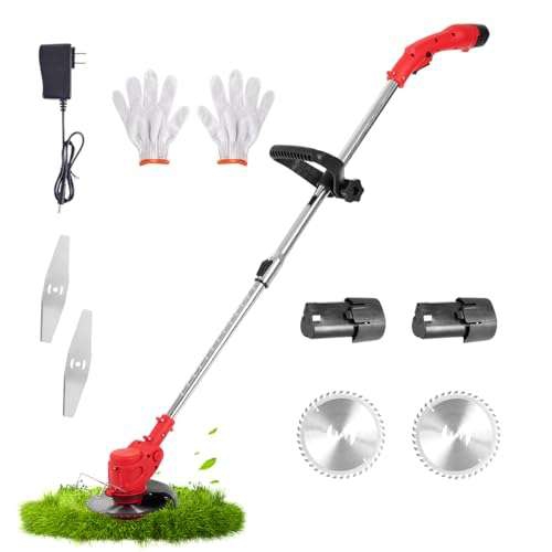 Amazon Ir a la ofertaSGYU Rojo - Trimmer Desbrozadora,Desbrozadora Electrica Inalambrica, Cortadora De Pasto,600W con 3 Tipos De Cuchillas Ajustable y Liviana Cortacésped Eléctrico Inalámbrico con Batería De Capacidad