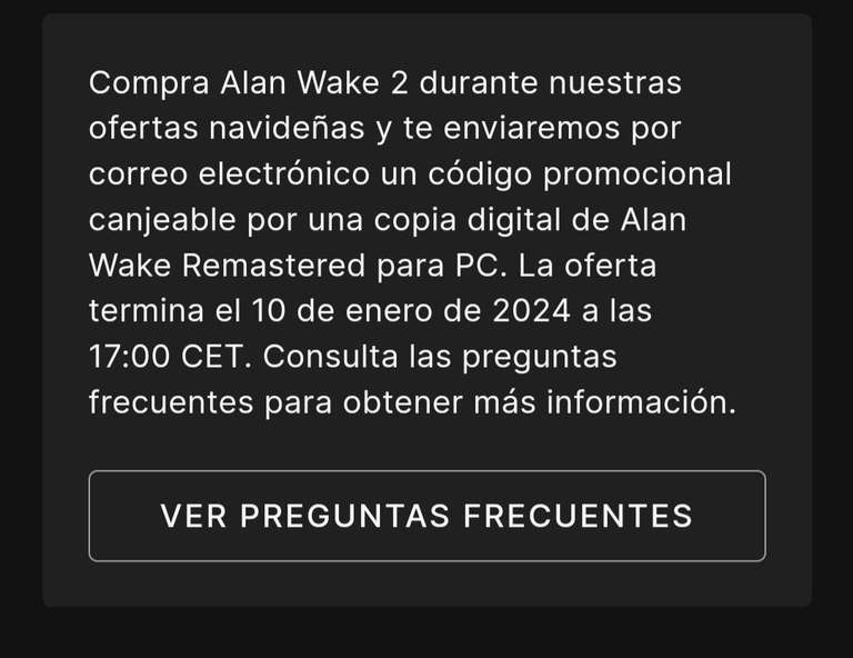 Epic Games Ir a la ofertaPues la descripción ya lo menciona, ahora Alan wake dos esta a buen precio 698 y puede bajar con el cupón de epic. Recibes ambos juegos