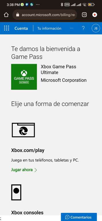 Gamivo Ir a la ofertaGame Pass Ultimate lo active en cuenta vieja y me agarró sin problema con vpn de eu