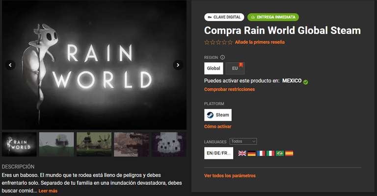 Gamivo Ir a la ofertaEres un baboso. El mundo que te rodea está lleno de peligros y debes enfrentarlo solo. Separado de tu familia en una inundación devastadora, debes buscar comida y refugio entre terribles aguaceros torrenciales que amenazan con ahogar toda la vida. Sube a través de las ruinas de una antigua civilización, evade las fauces de feroces depredadores y descubre nuevas tierras repletas de extrañas criaturas y misterios enterrados. ¡Encuentra a tu familia antes de que la muerte te encuentre a ti!