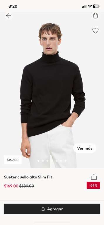 H&M Ir a la ofertaSuéter de cuello alto en tejido suave y fino de algodón. Modelo con borde acanalado alrededor del cuello, puños y bastilla.