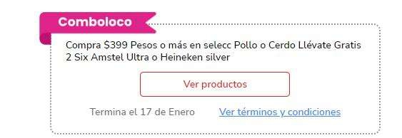 HEB - 2 six gratis (Amstel ULTRA o Heineken Silver) en la compra de $399 o más en pollo o cerdo