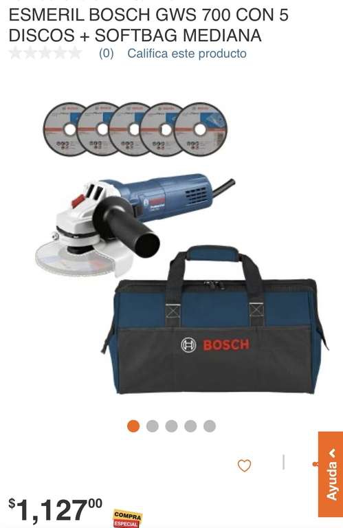 Home Depot Ir a la ofertaEsmeril casero pero potente, la bolsa es mediana pero si le caben varias cosas, es muy resistente. En línea he visto el esmeril en 1000 pesos aprox, y la bolsa en en 400 pesos.
