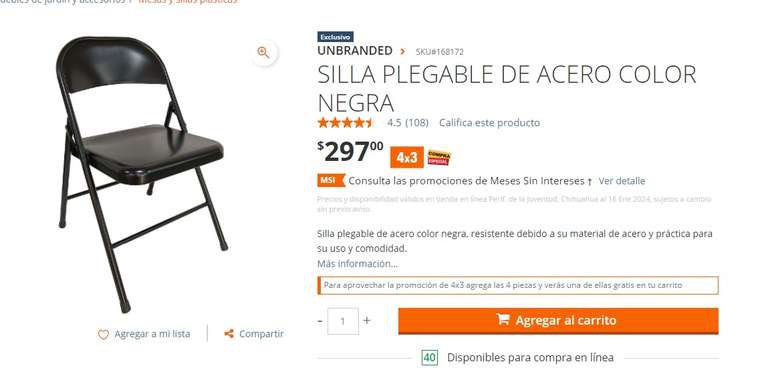 Home Depot: SILLA DE METAL PLEGABLE 4X3