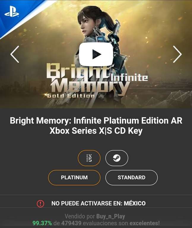 Kinguin: Bright Memory: Infinite Platinum Edition AR Xbox Series X|S CD Key