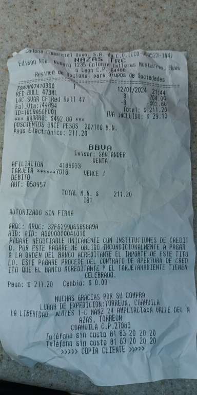 Oxxo Nazas TRC: Redbull 473 ML a 26.40 - Monterrey
