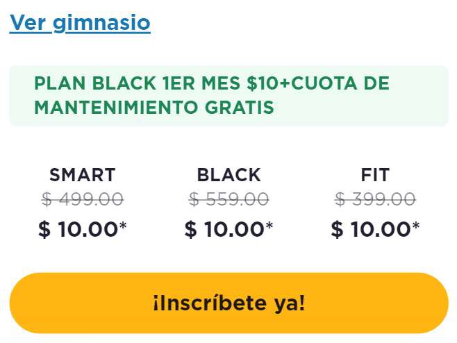 Plan Smart Fit Negro; Mantenimiento y registro gratis 1er mes $10